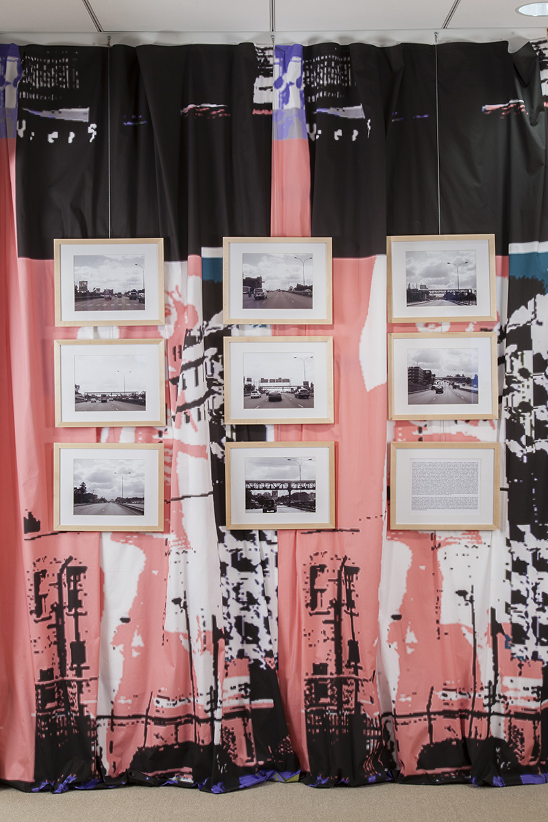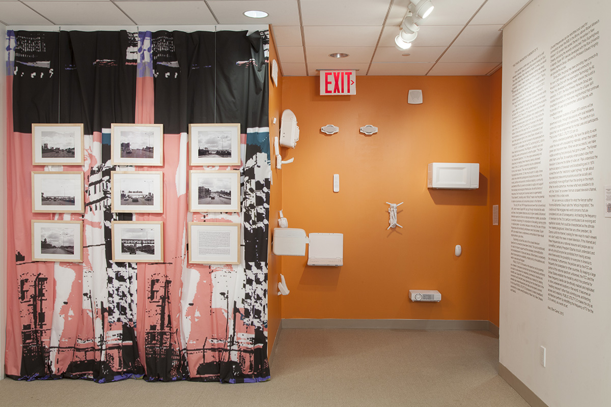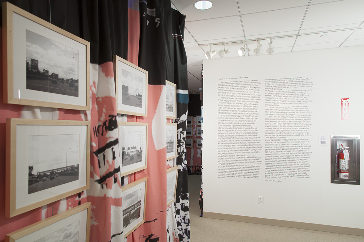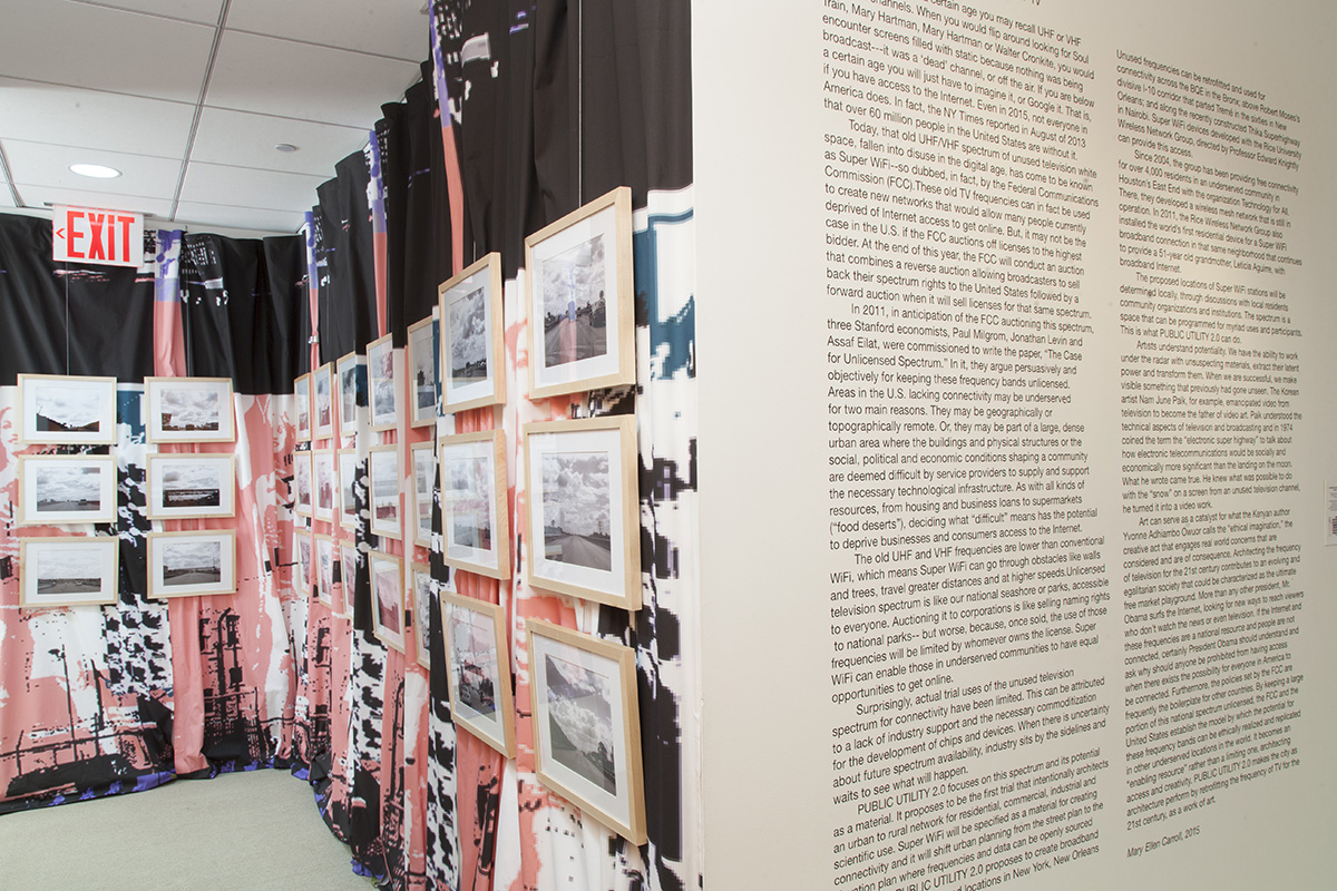 The work on display at the Lambent Foundation is a modified version of PUBLIC UTILITY 2.0, the commision for the biennial, Prospect.3 New Orleans, under the artistic direction of Franklin Sirmans, the chief curator of contemporary art at the Los Angeles County Museum of Art. The work was originally conceived of displayed at the American Institute of Architects at Lee Circle in New Orleans.